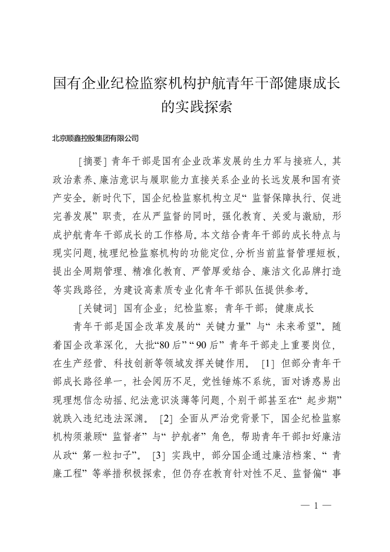 国有企业纪检监察机构护航青年干部健康成长的实践探索