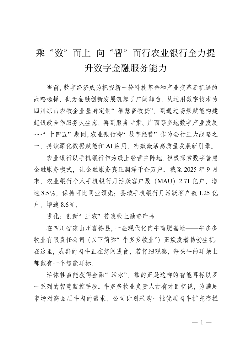 乘“数”而上 向“智”而行农业银行全力提升数字金融服务能力