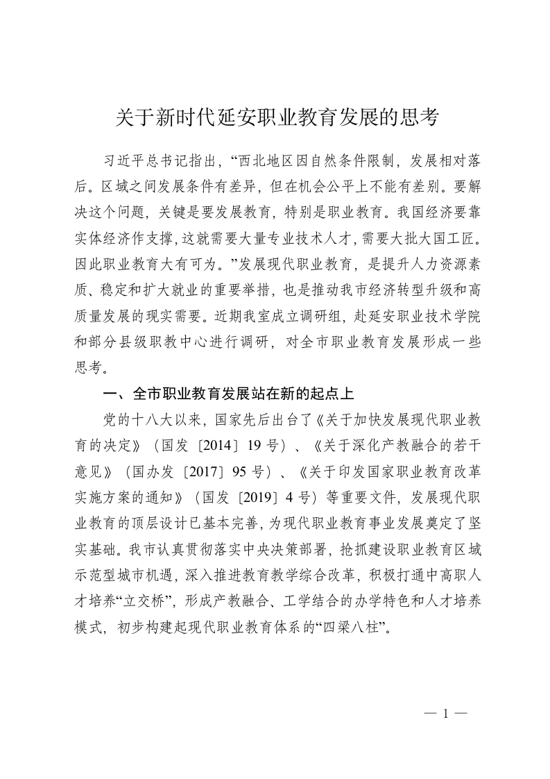 首页公文大全工作汇报关于新时代延安职业教育发展的思考