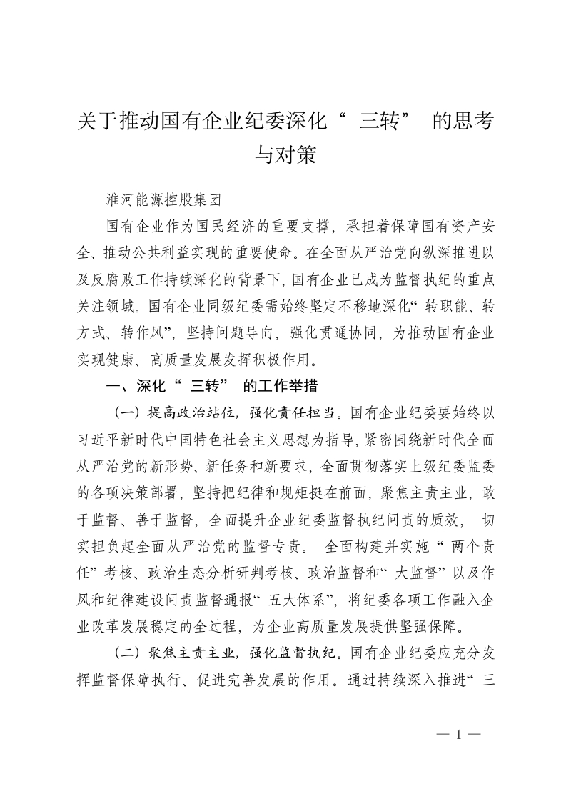 关于推动国有企业纪委深化“ 三转” 的思考与对策