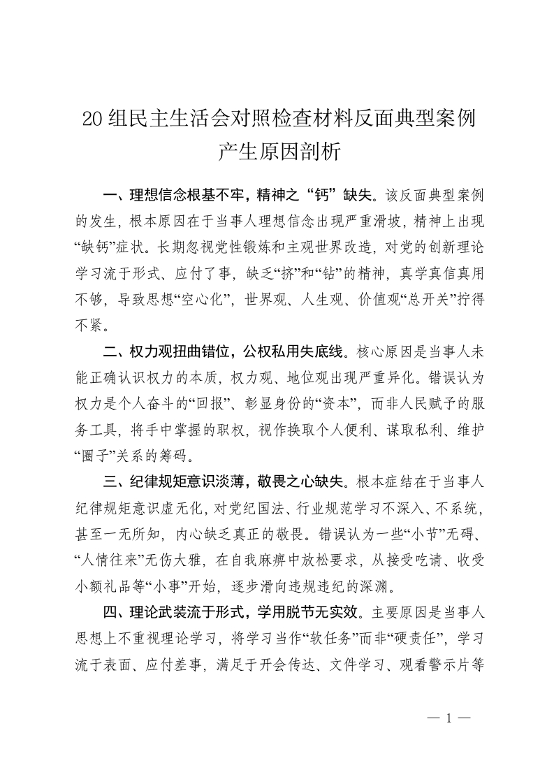 20组民主生活会对照检查材料反面典型案例产生原因剖析