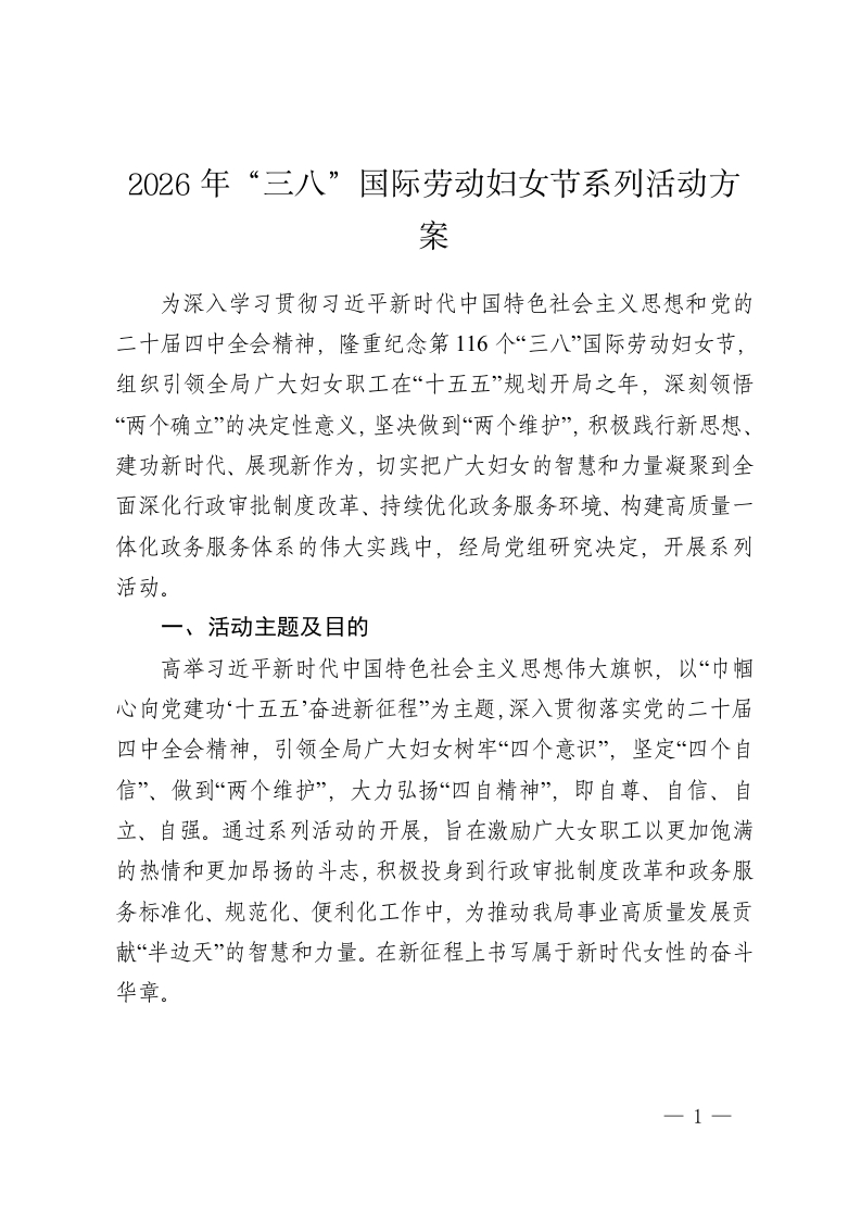 2026年“三八”国际劳动妇女节系列活动方案