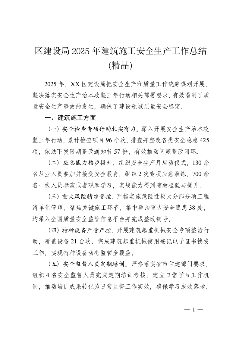 区建设局2025年建筑施工安全生产工作总结(精品)