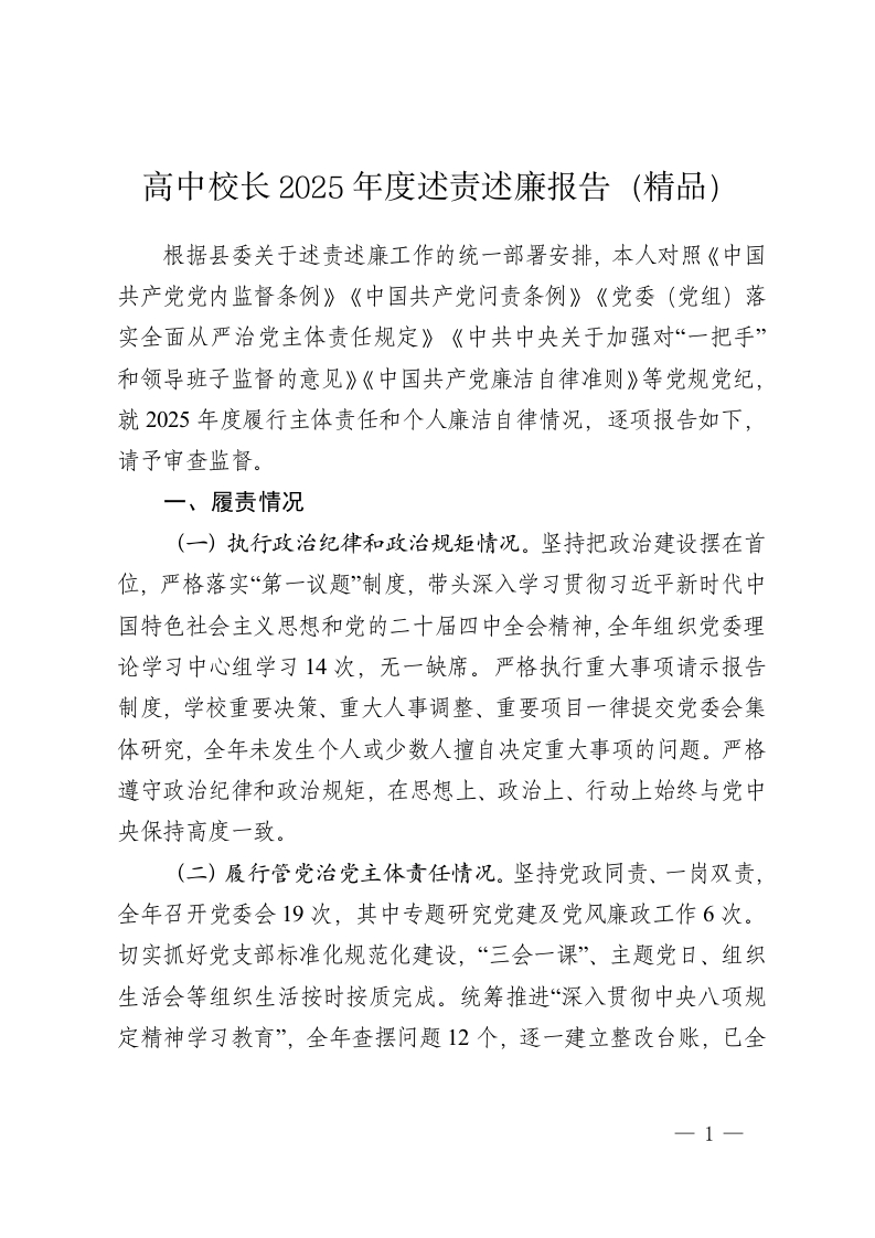 高中校长2025年度述责述廉报告(精品)