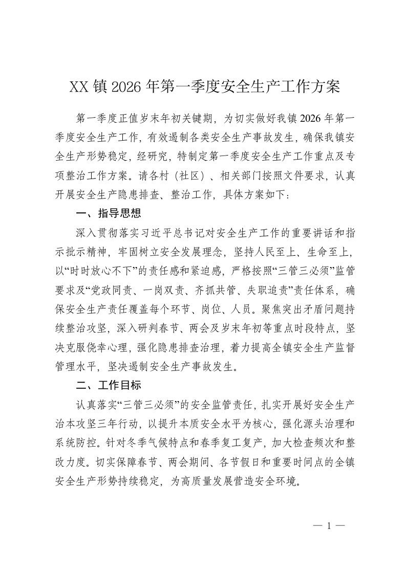 首页公文大全计划方案XX镇2026年第一季度安全生产工作方案