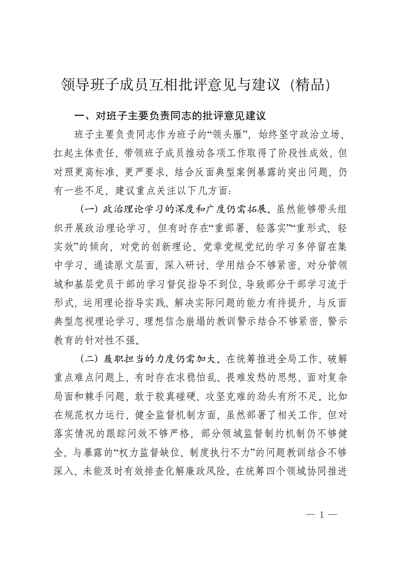 首页公文大全对照检查领导班子成员互相批评意见与建议(精品)