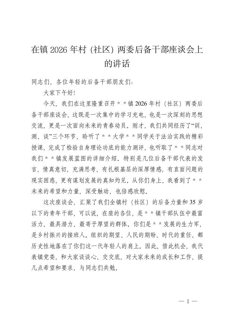 在镇2026年村(社区)两委后备干部座谈会上的讲话
