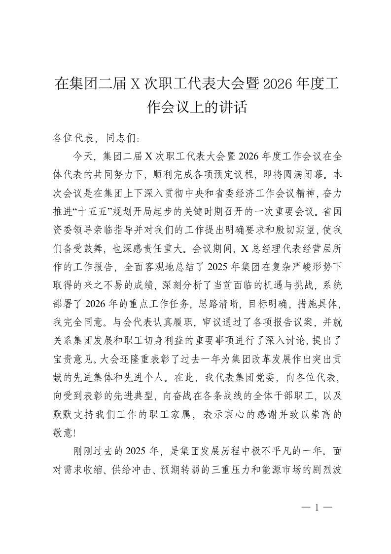 在集团二届X次职工代表大会暨2026年度工作会议上的讲话