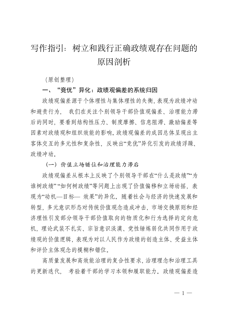 写作指引:树立和践行正确政绩观存在问题的原因剖析