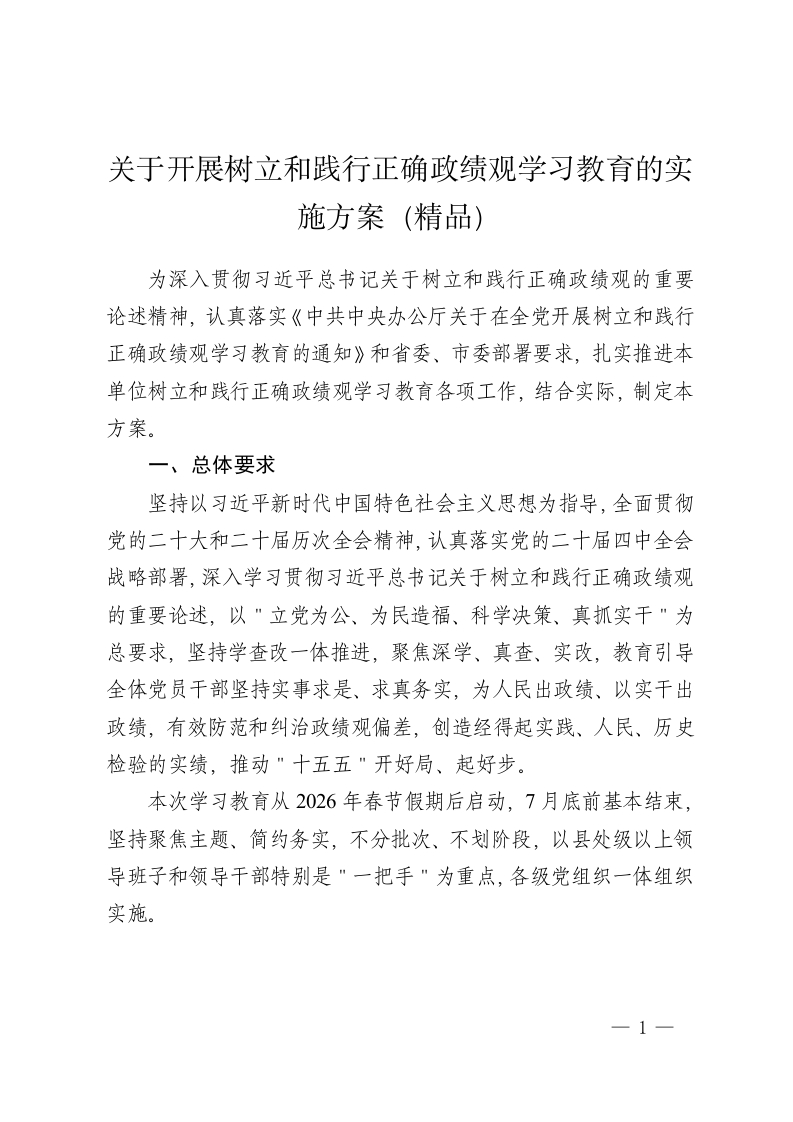 关于开展树立和践行正确政绩观学习教育的实施方案(精品)docx