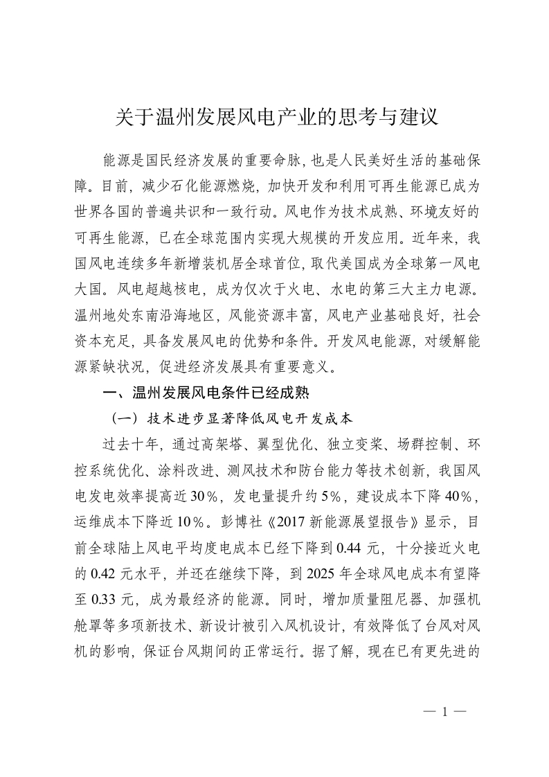 关于温州发展风电产业的思考与建议