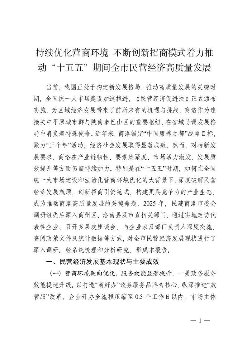 持续优化营商环境 不断创新招商模式着力推动“十五五”期间全市民营经济高质量发展