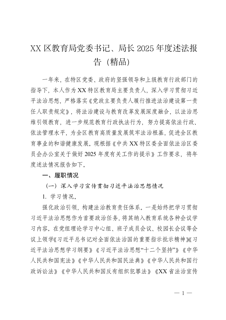 XX区教育局党委书记、局长2025年度述法报告(精品)