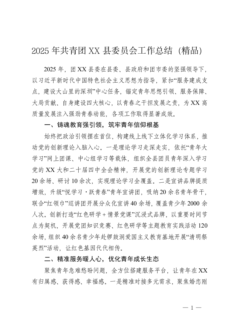 2025年共青团XX县委员会工作总结