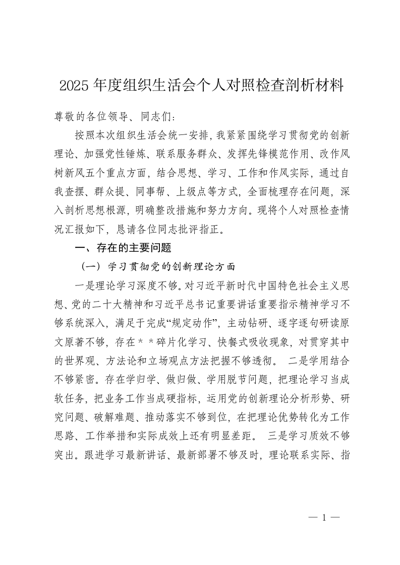 首页公文大全组织生活会2025年度组织生活会个人对照检查剖析材料