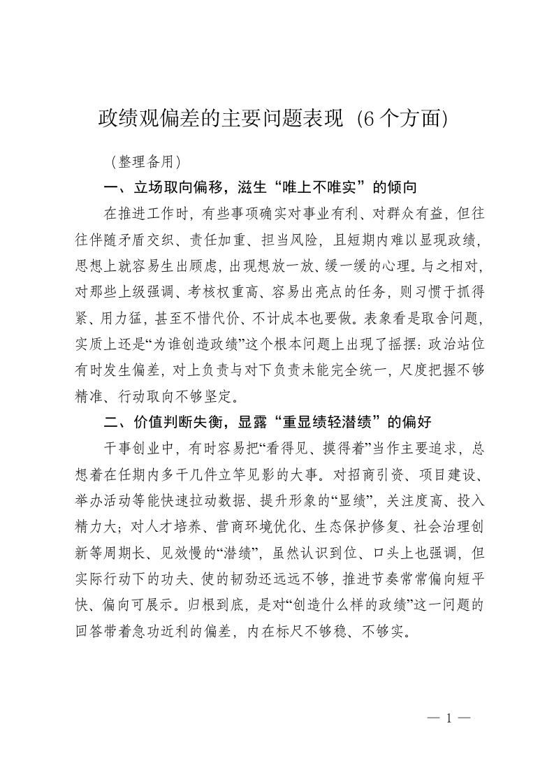 政绩观偏差的主要问题表现(6个方面)