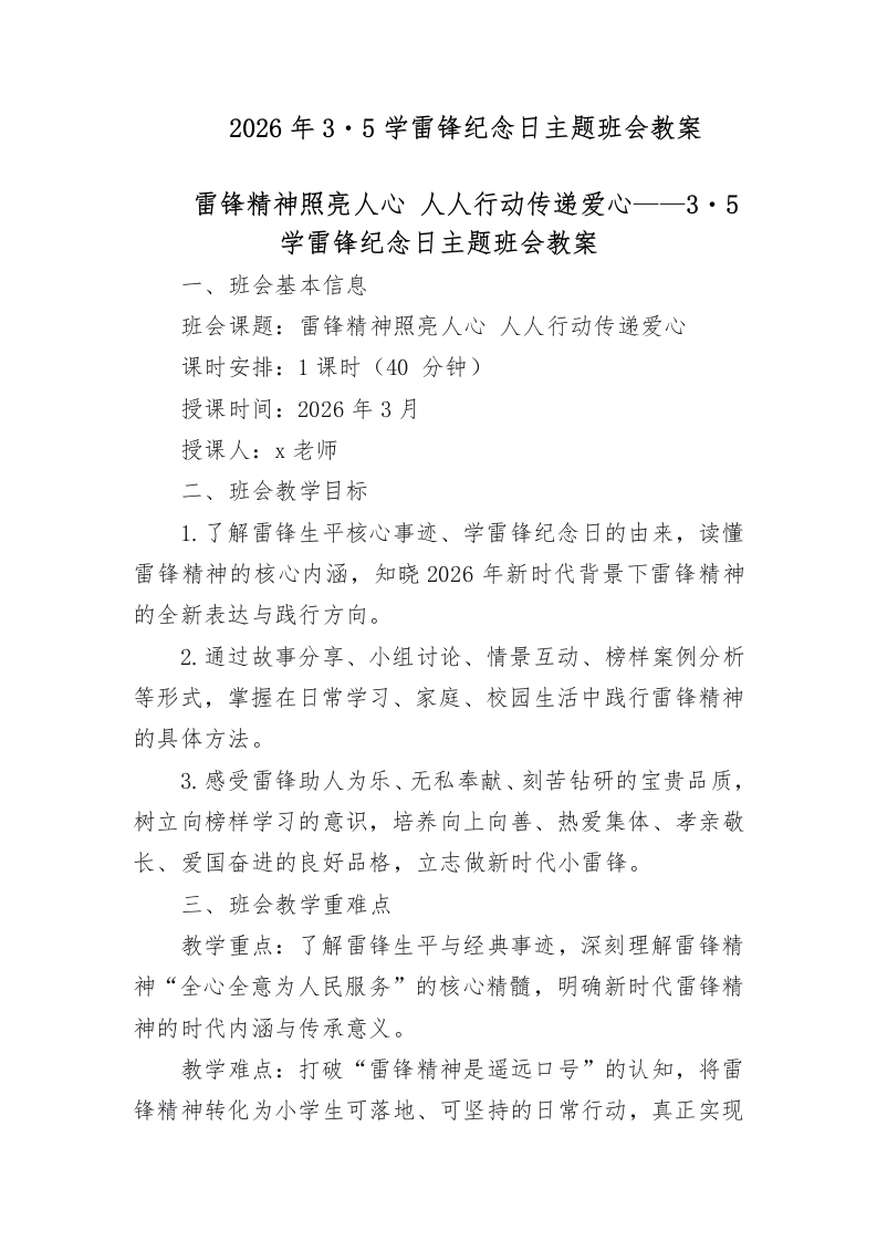2026年3・5学雷锋纪念日主题班会教案