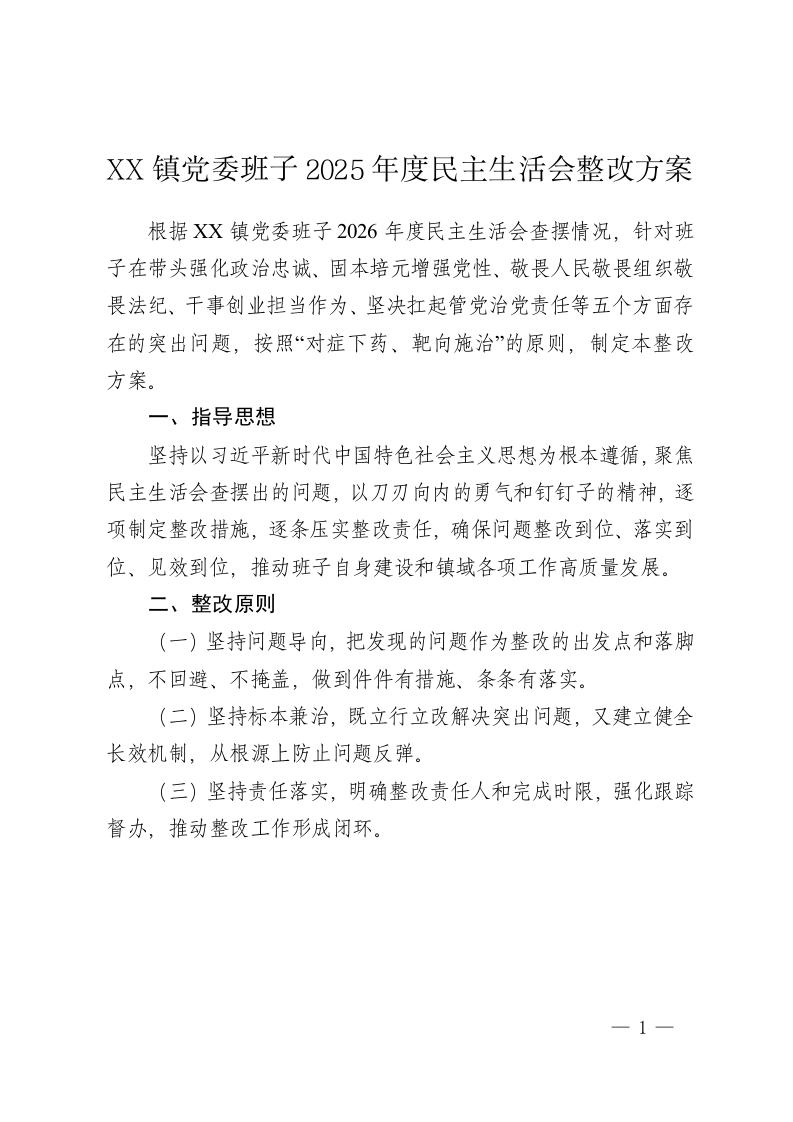 首页公文大全民主生活会XX镇党委班子2025年度民主生活会整改方案