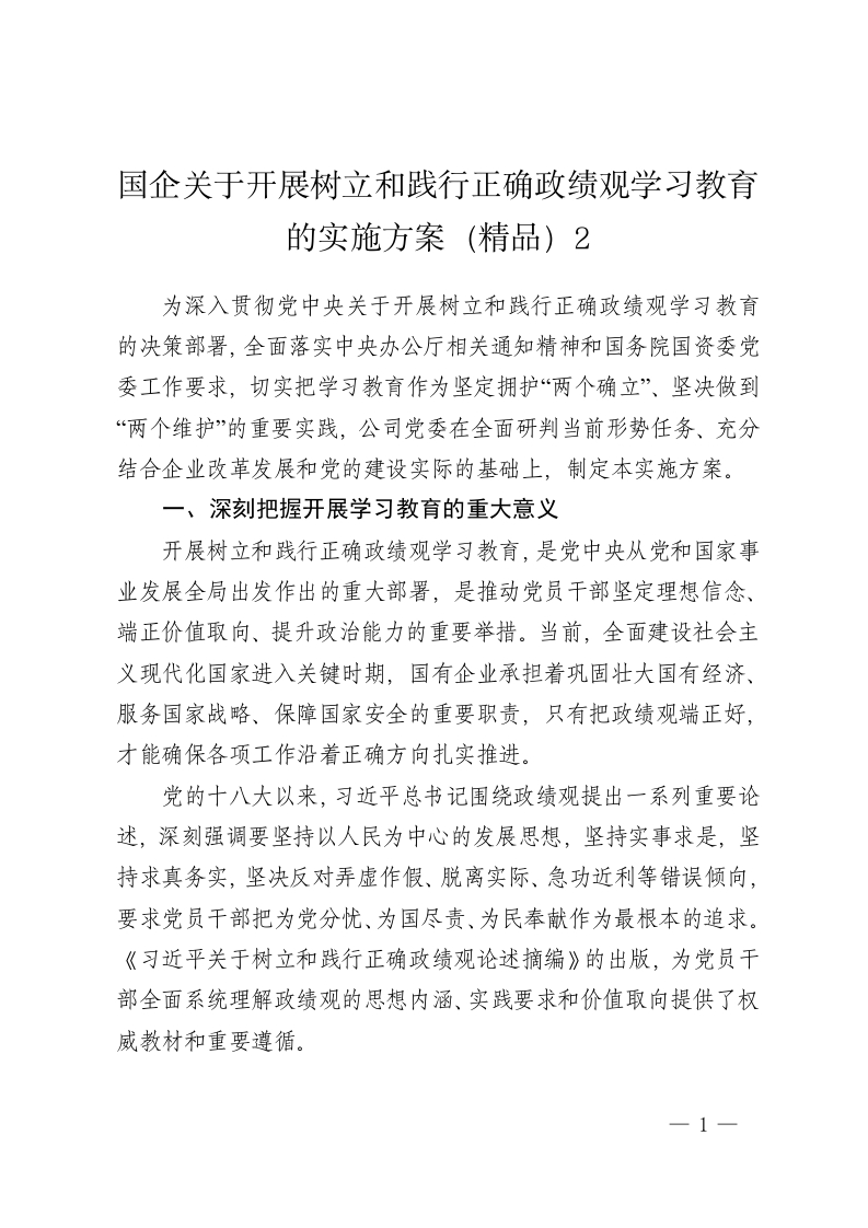 国企关于开展树立和践行正确政绩观学习教育的实施方案(精品)2