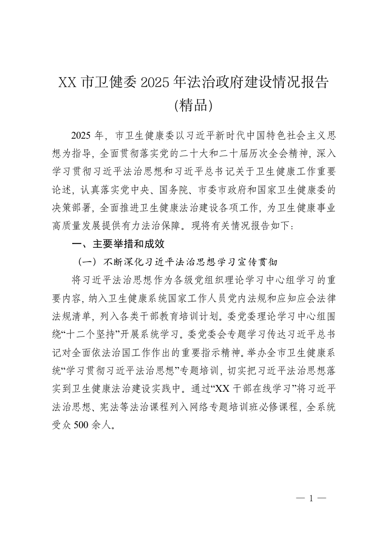 XX市卫健委2025年法治政府建设情况报告(精品)