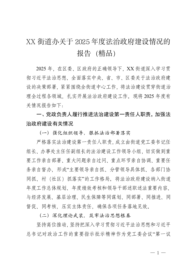 XX街道办关于2025年度法治政府建设情况的报告(精品)