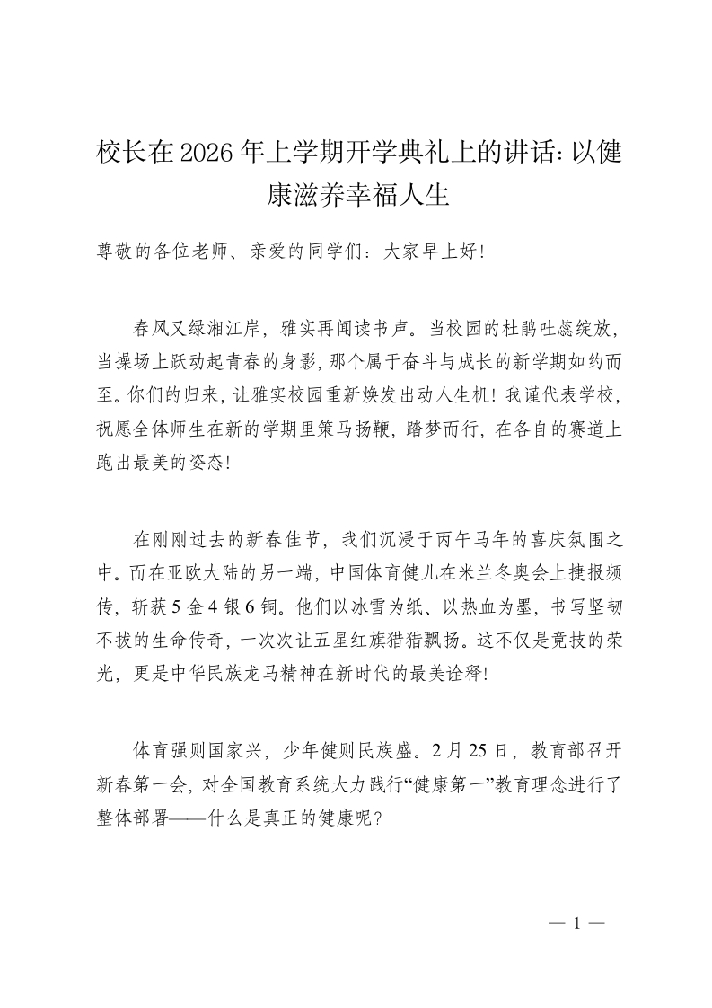 首页百家争鸣学校校长在2026年上学期开学典礼上的讲话:以健康滋养幸福人生