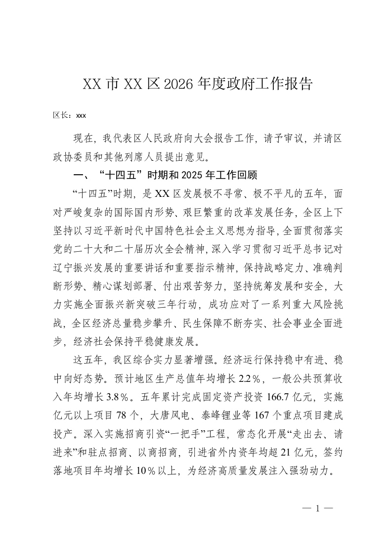 XX市XX区2026年度政府工作报告