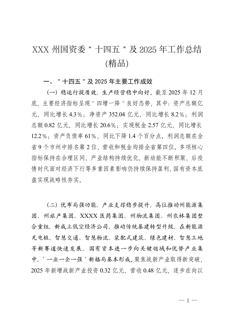 XXX州国资委"十四五"及2025年工作总结(精品)