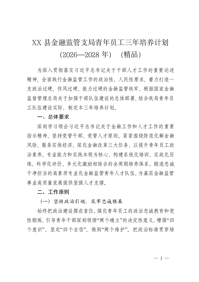 XX县金融监管支局青年员工三年培养计划(2026—2028年)(精品)
