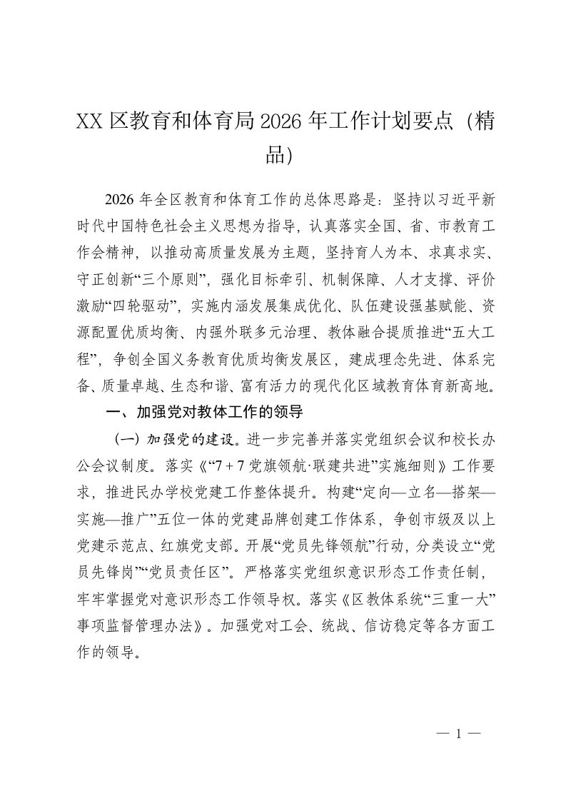 XX区教育和体育局2026年工作计划要点(精品)