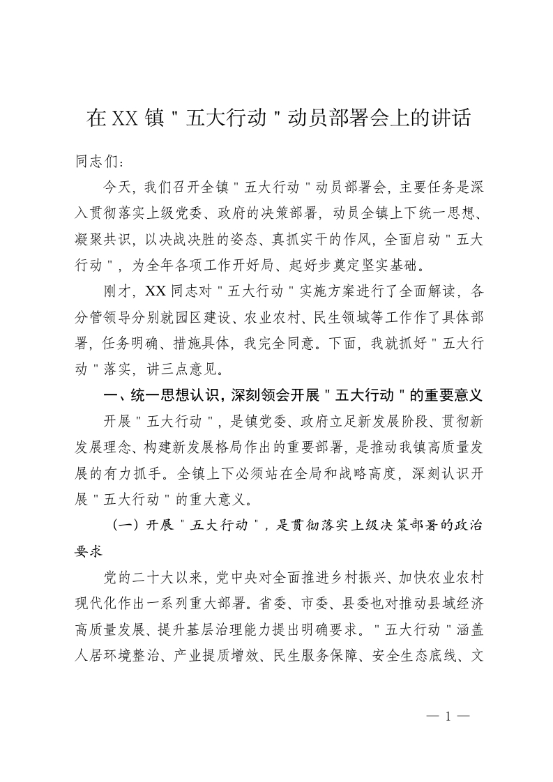 首页公文大全讲话发言在XX镇"五大行动"动员部署会上的讲话