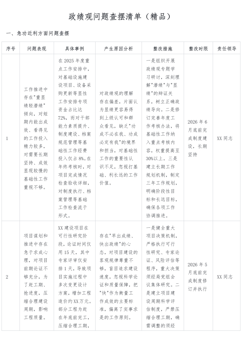 政绩观问题查摆清单(精品)