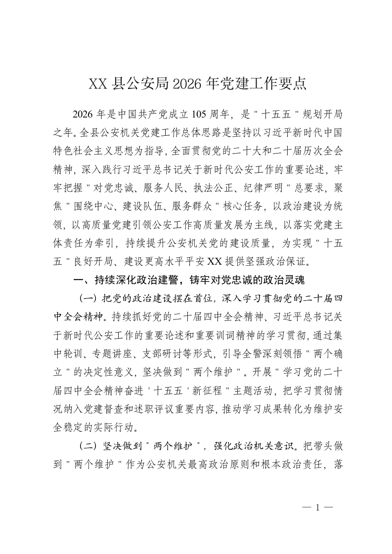 首页公文大全工作要点XX县公安局2026年党建工作要点
